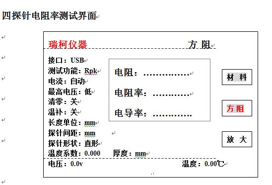 2.設(shè)定好薄膜的厚度,探針間距、電壓根據(jù)需要選擇高,中,低檔位;選擇探頭形狀;方形還是直線形探針.