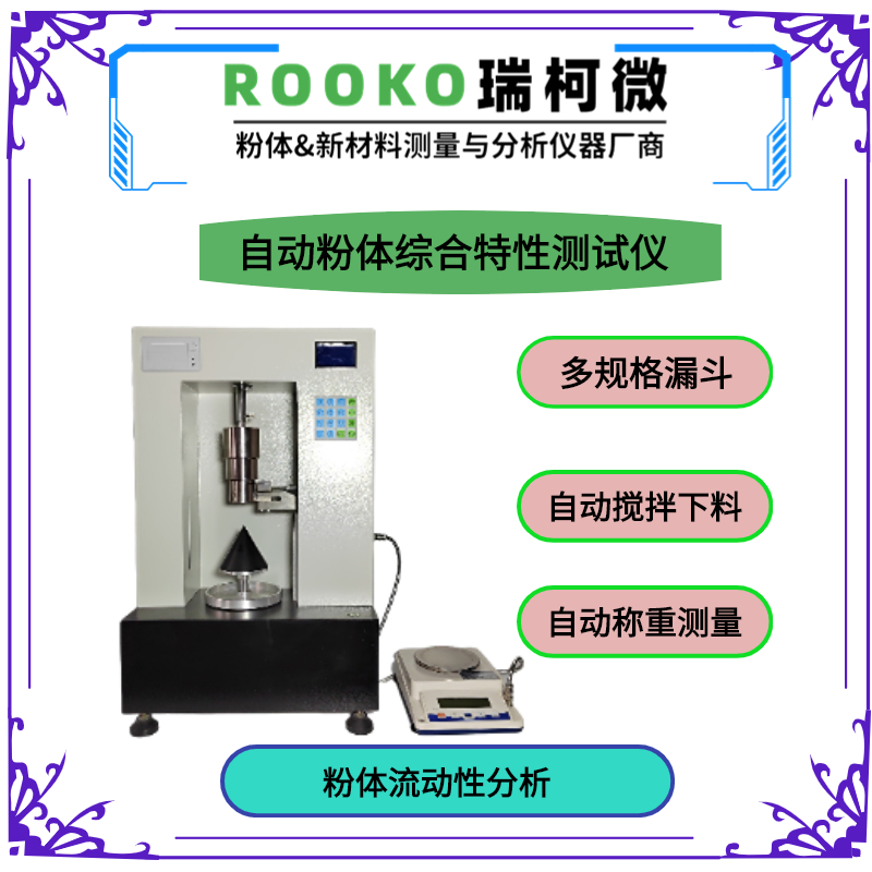 粉體之所以流動,其本質是粉體中粒子受力的不平衡,對粒子受力分析可知,粒子的作用力有重力、顆粒間的黏附力、摩擦力、靜電力等,對粉體流動影響大的是重力和顆粒間的黏附力。影響粉體流動性的因素復雜,粒徑分布和顆粒形狀對粉體的流動性具有重要影響。此外,溫度、含水量、靜電電壓、空隙率、堆密度、粘結指數、內摩擦系數、空氣中的濕度等因素也對粉體的流動性產生影響。通過分析粉體流動性的影響因素,對于采用科學的方法測量粉體流動性具有重要意義。