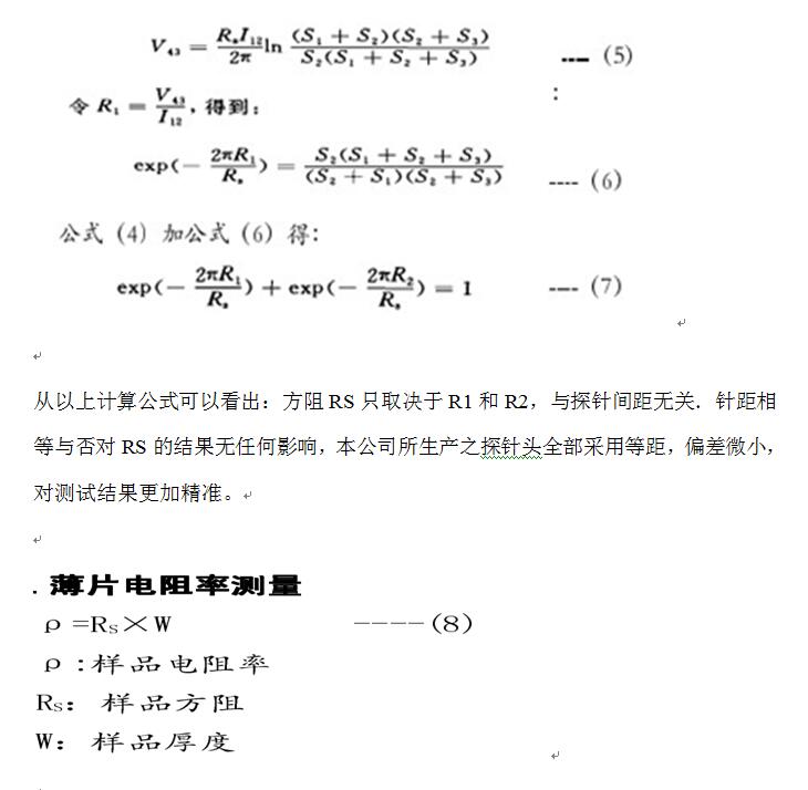 1.雙電測四探針法測試薄層樣品方阻計算和測試原理如下: