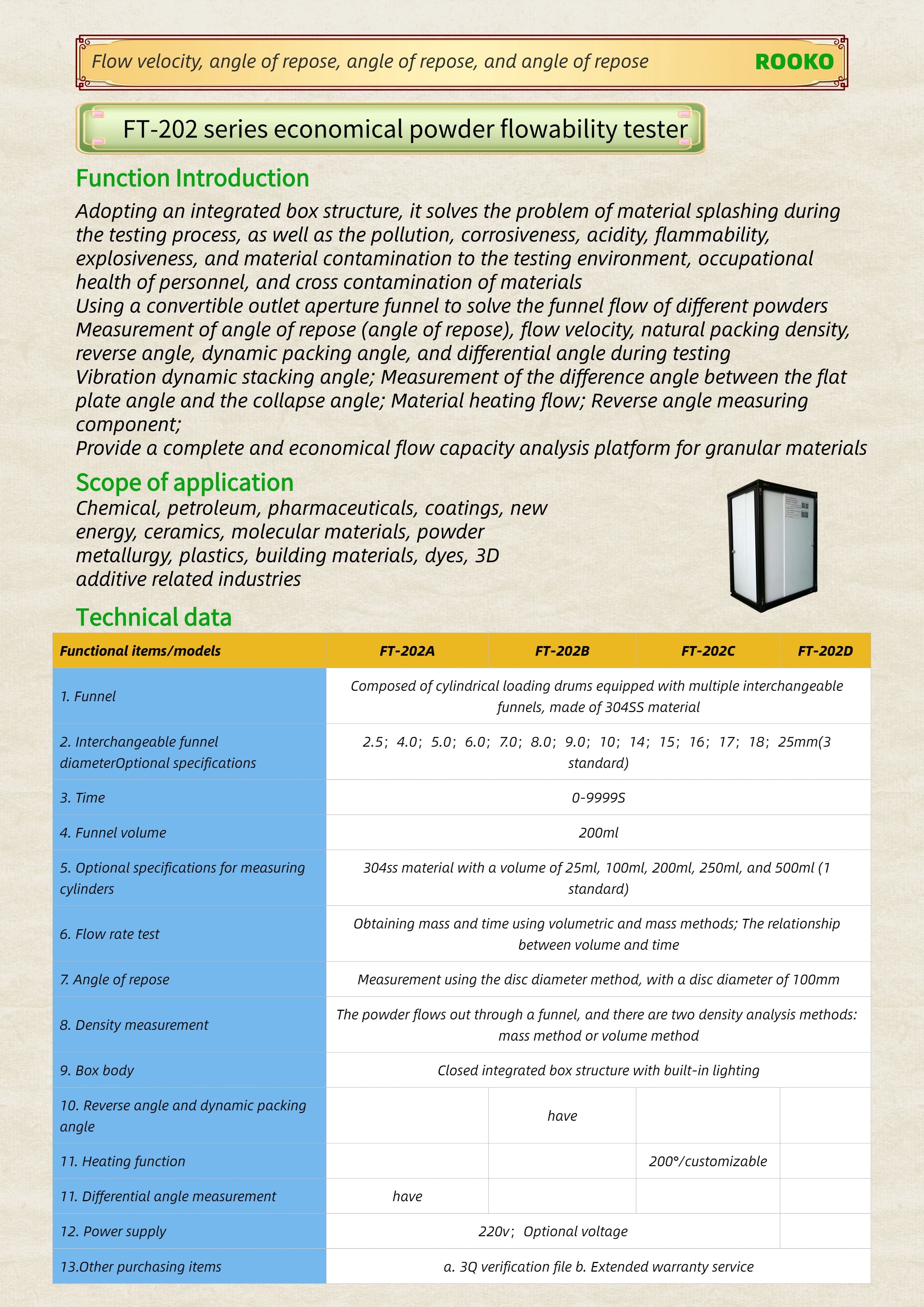 ROOKO瑞柯微專注于粉末/粉體/顆粒流動性測試儀,振實/松裝/堆積密度測定儀,休止角測定儀,安息角測定儀,粉末電阻率測試儀,粉體綜合特性測試儀,四探針/方阻/電阻率測試儀,材料體積/表面電阻率測試儀廠家提供技術資訊和解答