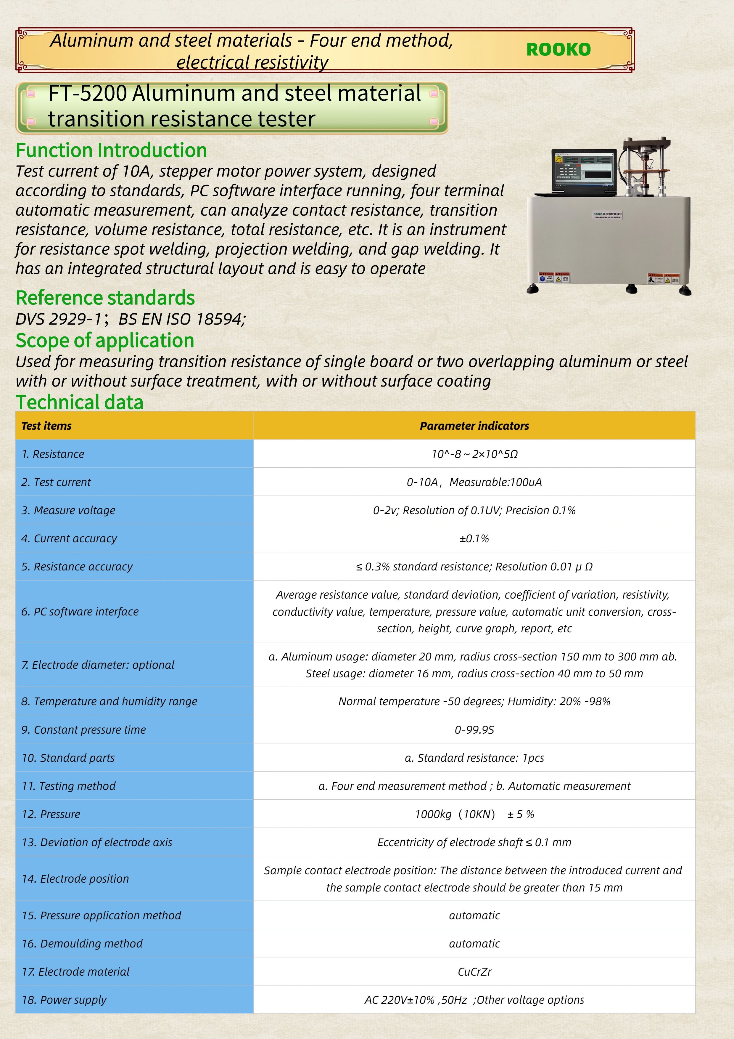 FT-5200 Aluminum and steel material transition resistance tester