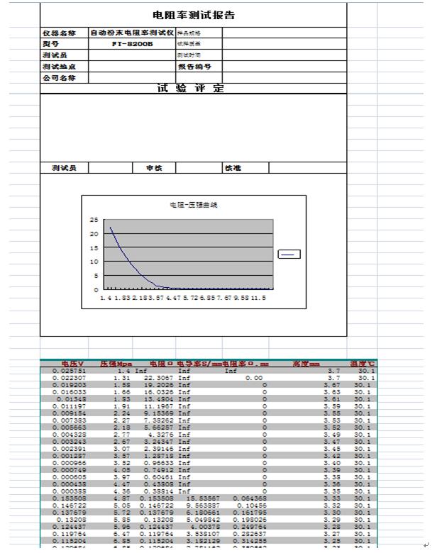 放置于固體模具中的粉末樣品收到壓力的變化,從而體積被壓縮,在壓縮的過程中,實時測量粉末樣品受到壓力后,體積變化過程中電阻,電阻率,電導率的變化,直至壓實至穩定體積狀態;即空隙率很小接近于零.